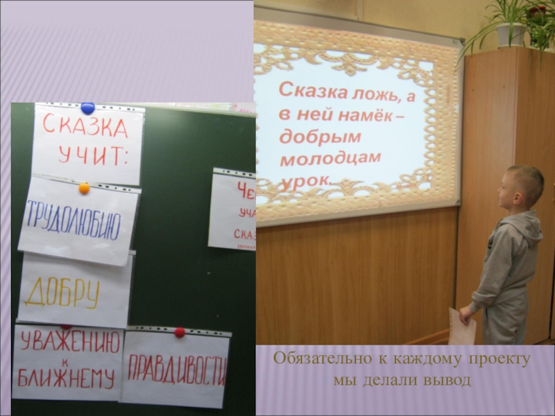 Слайд 10Обязательно к каждому проекту мы делали вывод