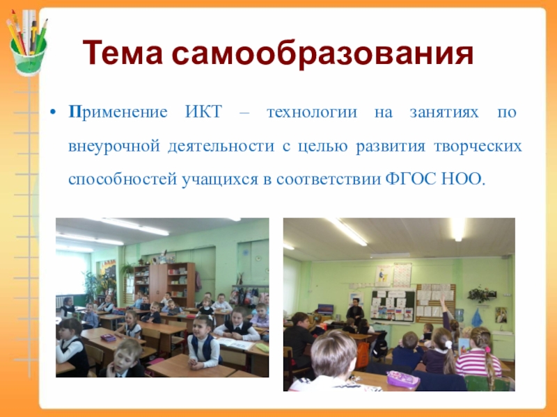 Тема самообразованияПрименение ИКТ – технологии на занятиях по внеурочной деятельности с целью развития творческих способностей учащихся в