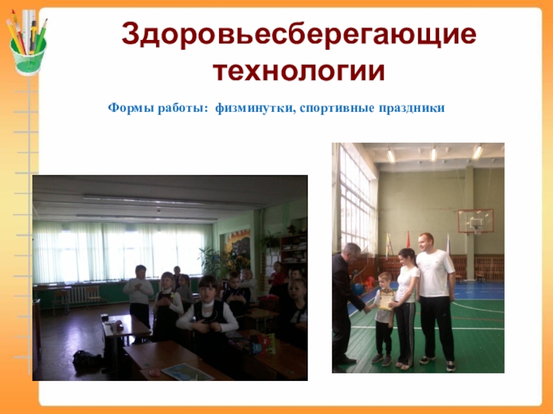 Здоровьесберегающие технологииФормы работы: физминутки, спортивные праздники