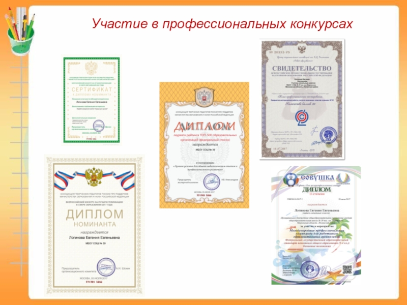 Слайд 11Участие в профессиональных конкурсах