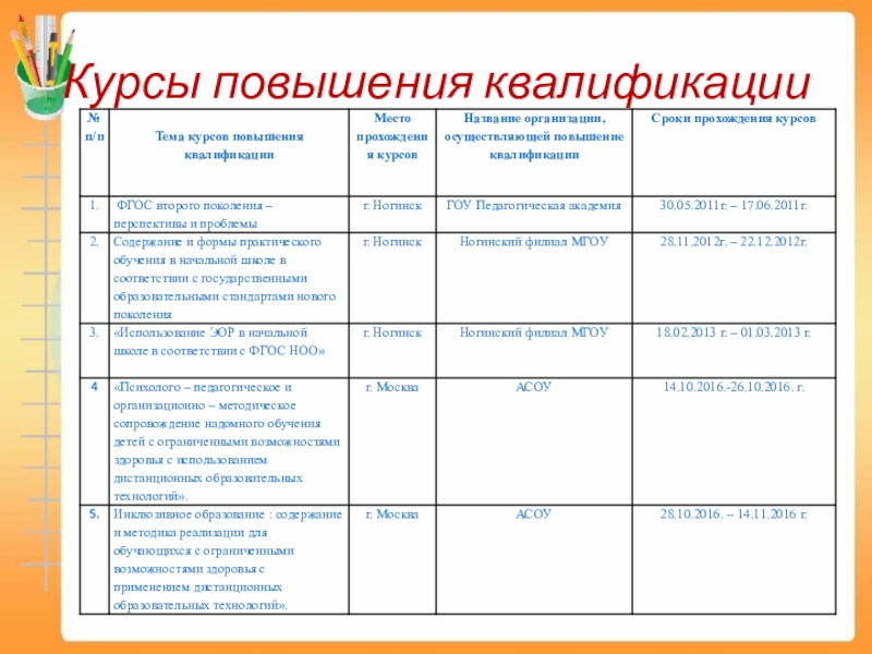 Слайд 6Курсы повышения квалификации