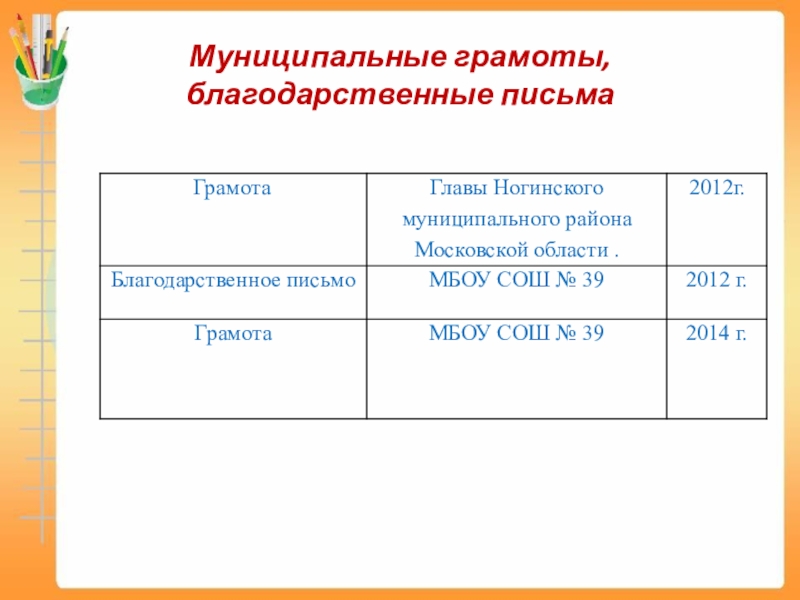Слайд 7Муниципальные грамоты, благодарственные письма