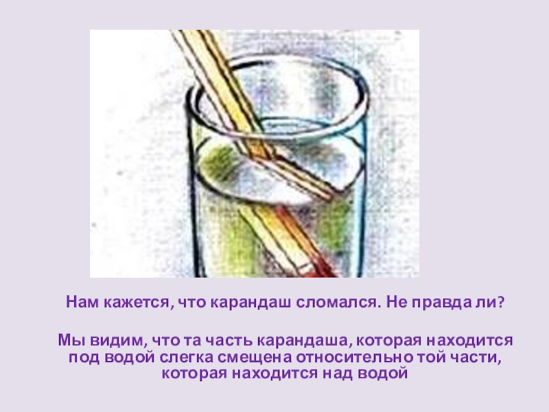 Слайд 5Нам кажется, что карандаш сломался. Не правда ли?