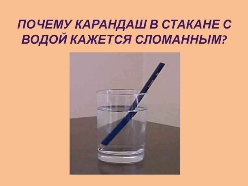 Слайд 2 ПОЧЕМУ КАРАНДАШ В СТАКАНЕ С ВОДОЙ КАЖЕТСЯ СЛОМАННЫМ?