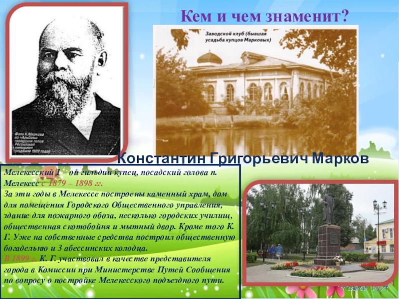 Мелекесский 1 – ой гильдии купец, посадский голова п. Мелекесс с 1879 – 1898 гг.