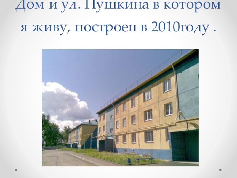Слайд 8Дом и ул. Пушкина в котором я живу, построен в 2010году