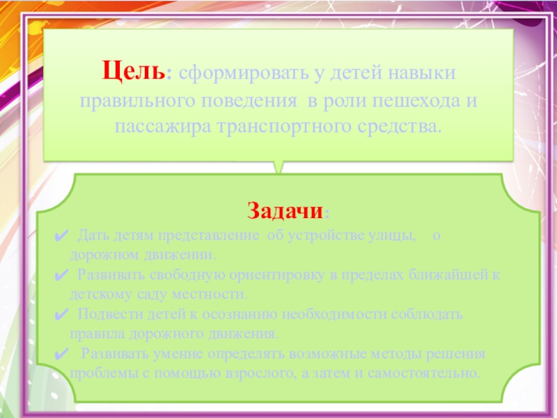 Подвести детей к осознанию необходимости соблюдать правила дорожного движения.