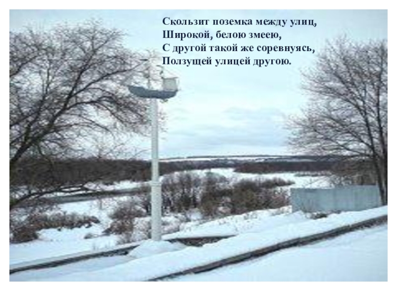 Слайд 11Скользит поземка между улиц, Широкой, белою змеею, С другой такой же соревнуясь, Ползущей улицей