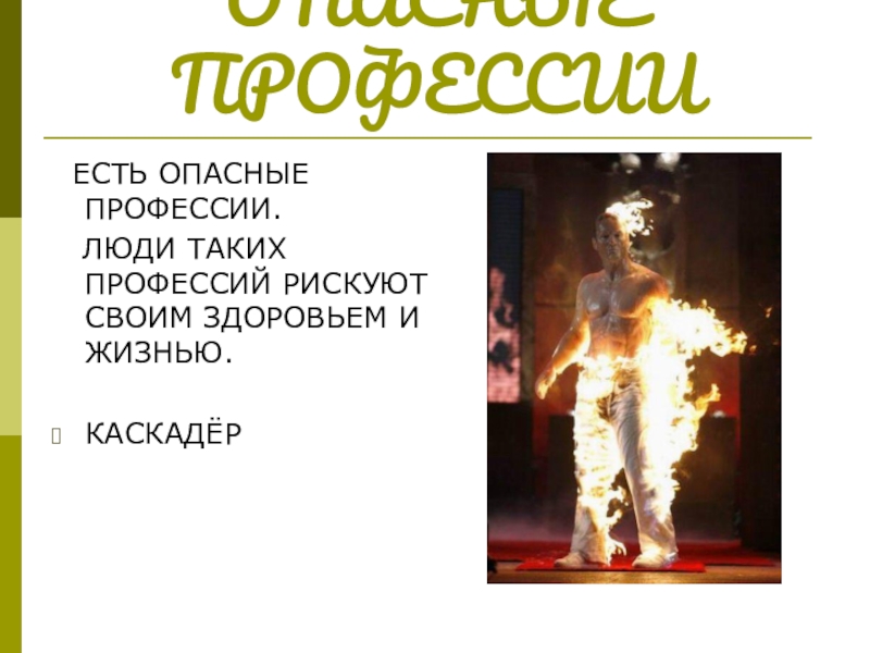 Слайд 5ОПАСНЫЕ ПРОФЕССИИ