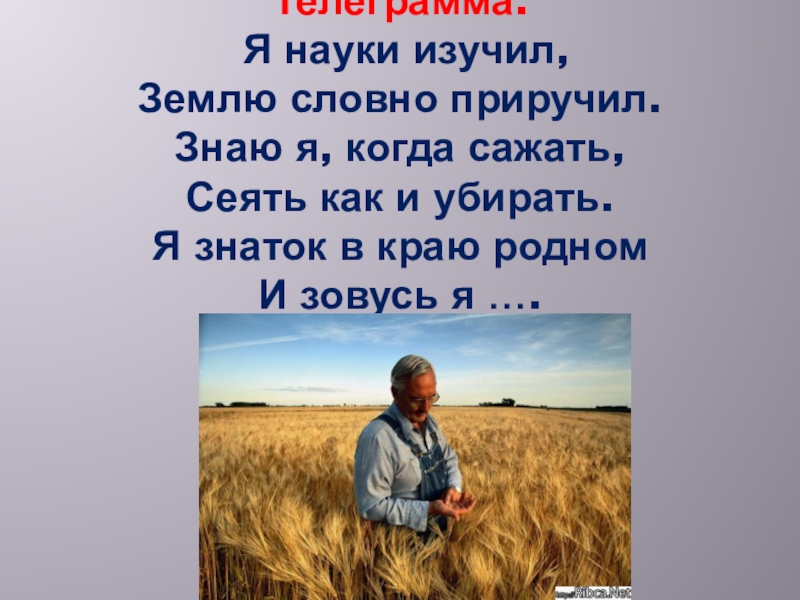 Труд человека кормит,