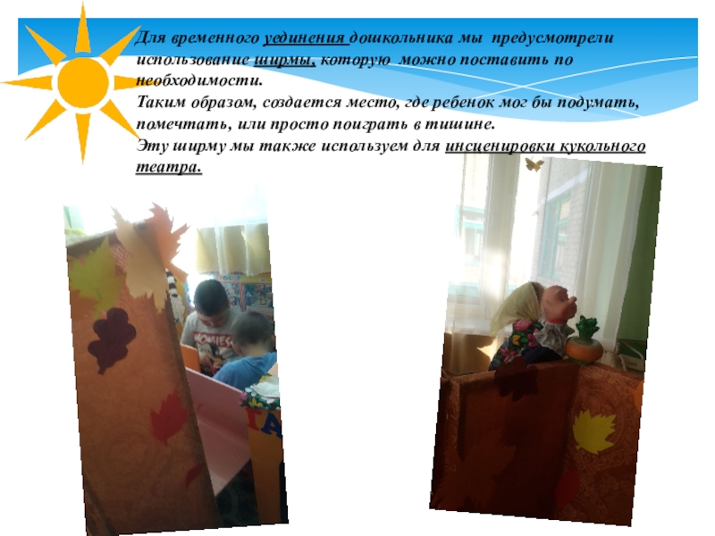 Согласно ФГОС ДО, развивающая предметно-пространственная среда должна обеспечивать максимальную реализацию образовательного потенциала пространства ДОУ, возможность общения и совместной деятельности детей разного возраста и взрослых, двигательной активности детей, а также возможности для уединения.