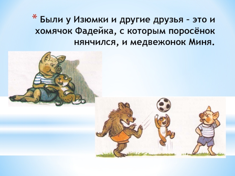 Слайд 9Были у Изюмки и другие друзья – это и хомячок Фадейка,