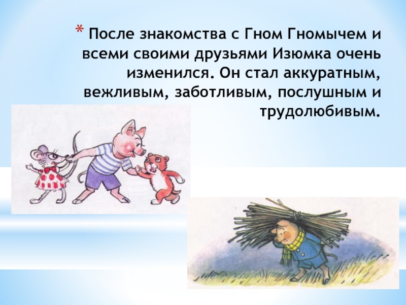 Слайд 10После знакомства с Гном Гномычем и всеми своими друзьями Изюмка очень