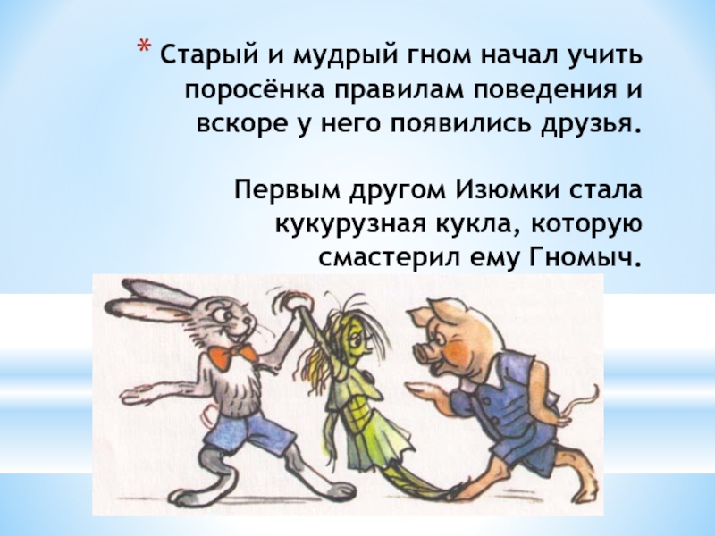 Слайд 5Гном Гномыч крепко подружился с Изюмкой и пустил его к себе