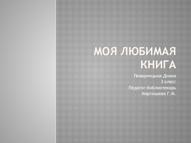 Моя любимая книгаПоварницына Диана3 классПедагог-библиотекарьМартюшева Г.М.