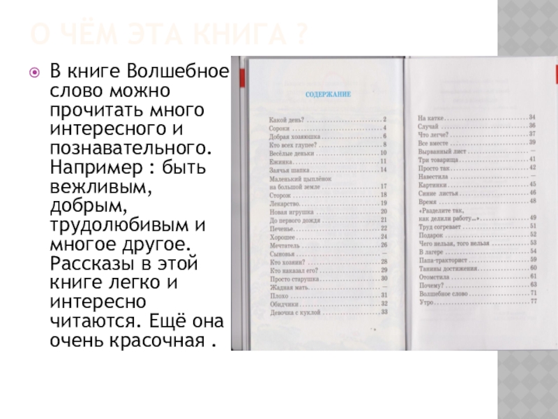 О чём эта книга ?В книге Волшебное слово можно прочитать много интересного и познавательного. Например : быть