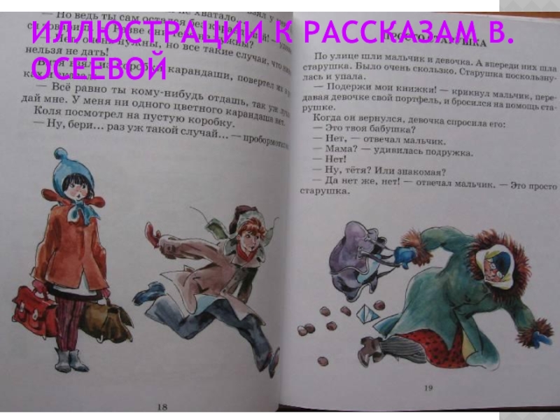 Слайд 10Иллюстрации к рассказам В.Осеевой
