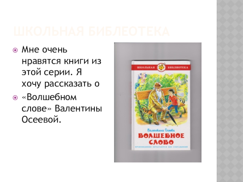 Школьная библеотекаМне очень нравятся книги из этой серии. Я хочу рассказать о «Волшебном слове» Валентины Осеевой.