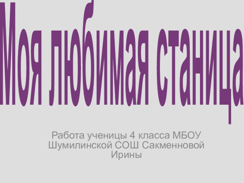 Работа ученицы 4 класса МБОУ Шумилинской СОШ Сакменновой ИриныМоя любимая станица