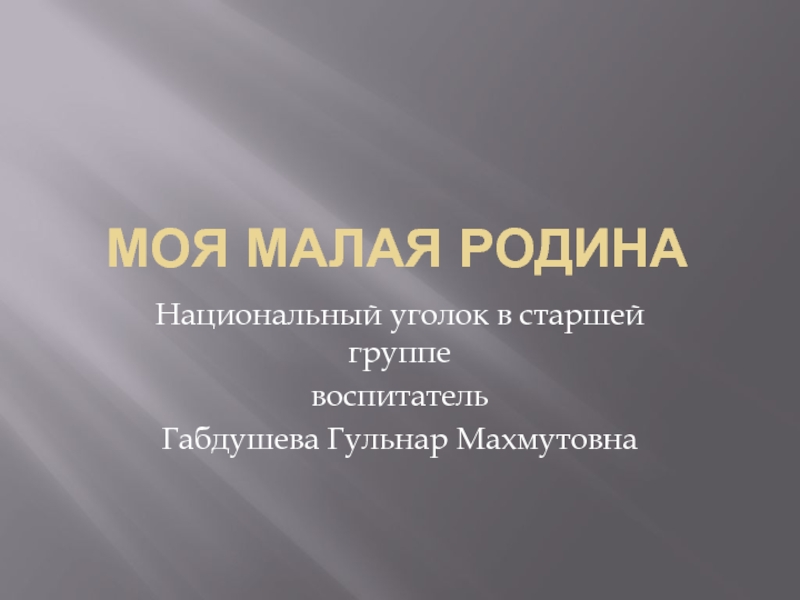 Моя малая РодинаНациональный уголок в старшей группевоспитательГабдушева Гульнар Махмутовна
