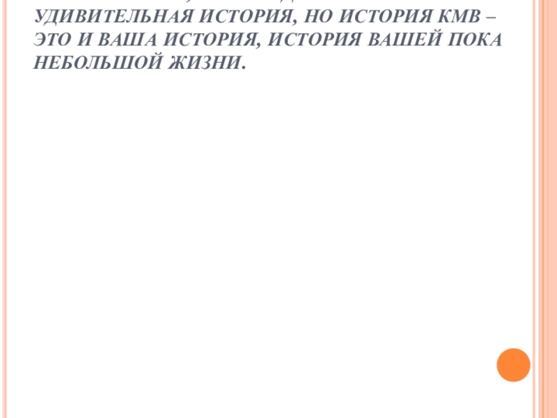 У КАЖДОГО СВОЯ УДИВИТЕЛЬНАЯ ИСТОРИЯ, НО ИСТОРИЯ КМВ – ЭТО И ВАША ИСТОРИЯ, ИСТОРИЯ ВАШЕЙ ПОКА НЕБОЛЬШОЙ ЖИЗНИ.