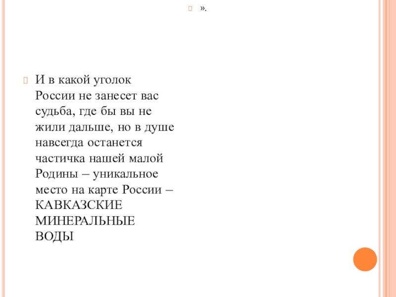 вы не жили дальше, но в душе навсегда останется частичка нашей малой Родины – уникальное место на карте России – КАВКАЗСКИЕ МИНЕРАЛЬНЫЕ ВОДЫ