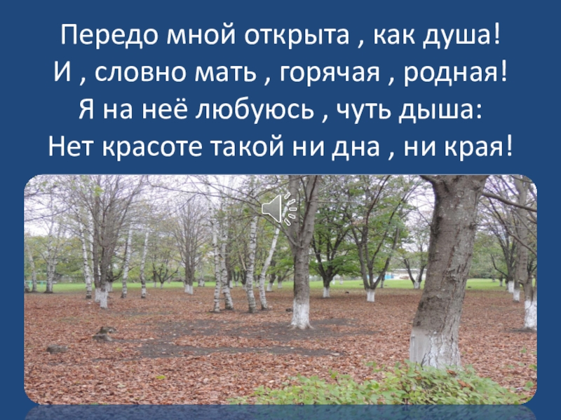 Слайд 11Передо мной открыта , как душа! И , словно мать , горячая