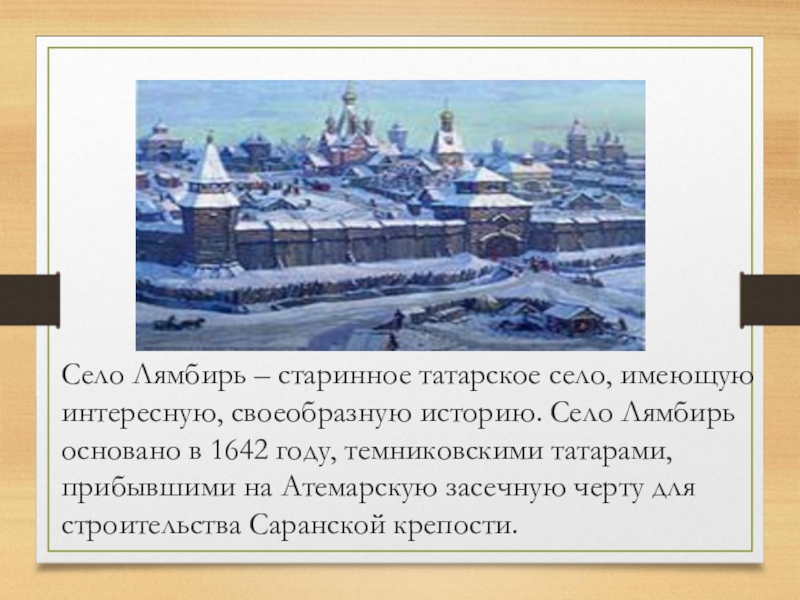 Слайд 9Село Лямбирь – старинное татарское село, имеющую интересную, своеобразную историю. Село