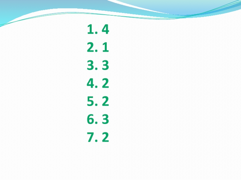 Слайд 201. 4 2. 1 3. 3 4. 2 5. 2 6. 3 7. 2