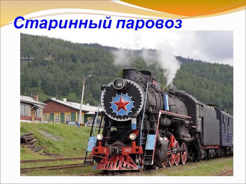 Слайд 23Старинный паровоз