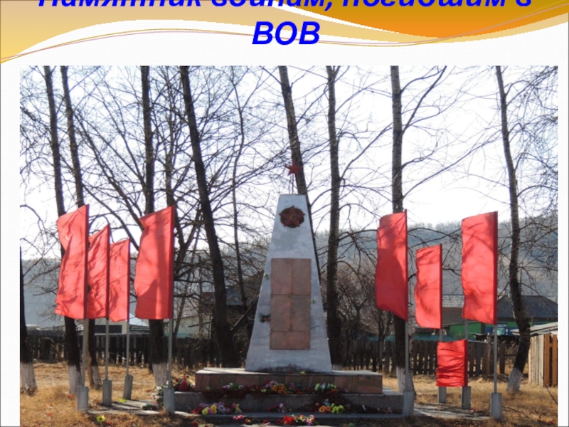 Слайд 27Памятник воинам, погибшим в ВОВ