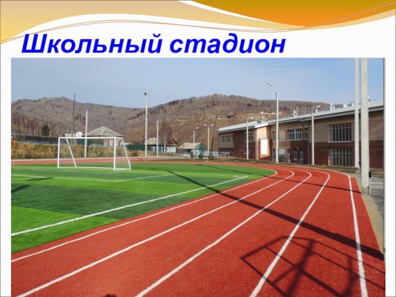 Слайд 14Школьный стадион