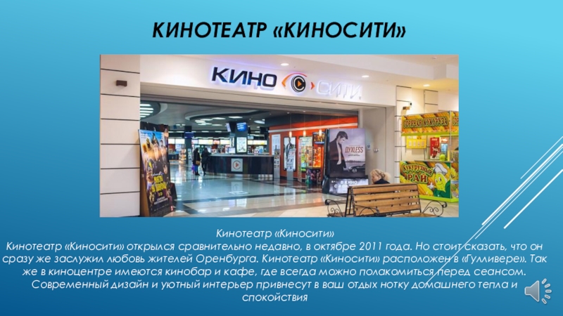 Слайд 36КИНОТЕАТР «КИНОСИТИ»