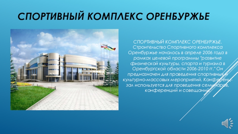 Слайд 38СПОРТИВНЫЙ КОМПЛЕКС ОРЕНБУРЖЬЕ