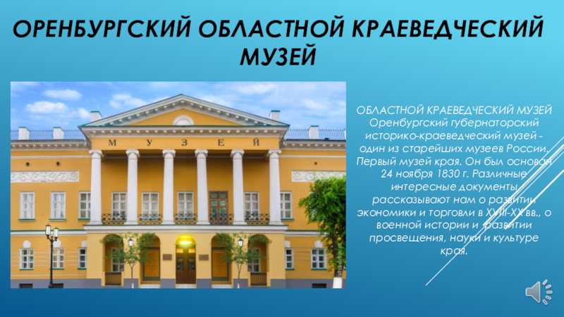 Слайд 25ОРЕНБУРГСКИЙ ОБЛАСТНОЙ КРАЕВЕДЧЕСКИЙ МУЗЕЙ