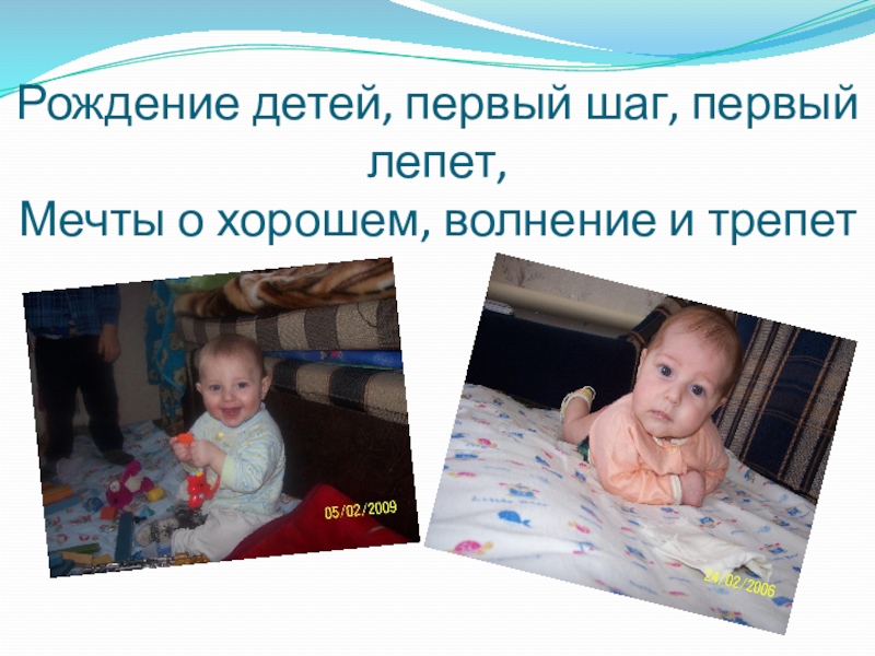 Слайд 7Рождение детей, первый шаг, первый лепет, Мечты о хорошем, волнение и