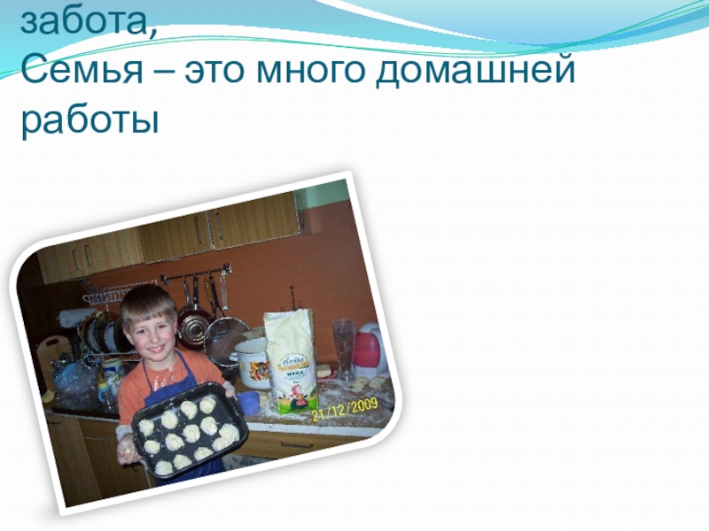 Семья – это труд, друг о друге забота,  Семья – это много домашней работы