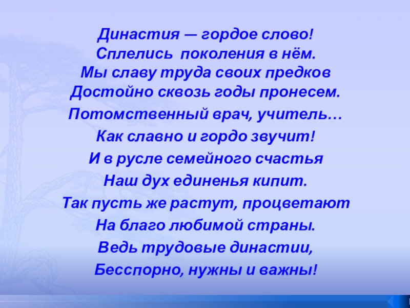 – кладезь знаний и мудрости, которые необходимо передать подрастающему поколению. И пусть нелёгок учительский путь, но не редеют ряды лучших представителей своего Отечества. О призвании к педагогическому труду, любви к детям ярко свидетельствуют многочисленные педагогические династии России.