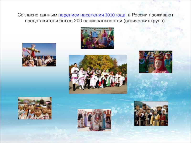 Слайд 37Согласно данным переписи населения 2010 года, в России проживают представители более