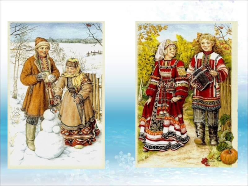 Слайд 13На данных иллюстрациях мы видим, как одевались на Руси.