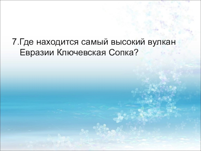 7.Где находится самый высокий вулкан Евразии Ключевская Сопка?