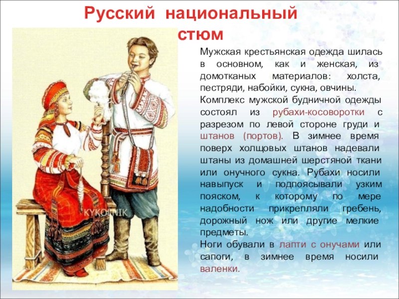 Мужская крестьянская одежда шилась в основном, как и женская,