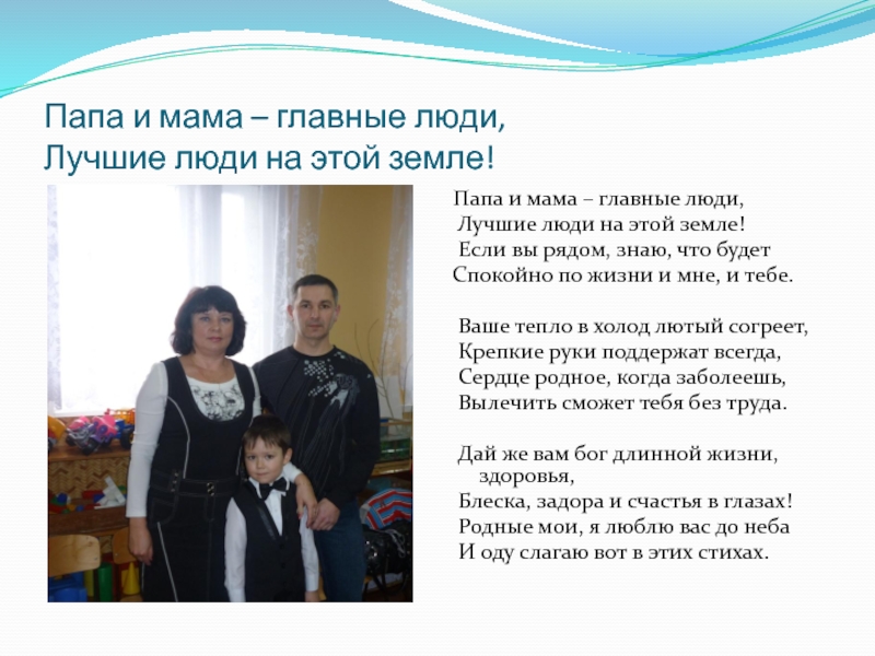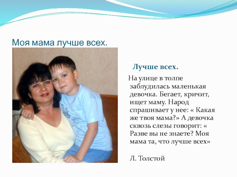 Мама – самый родной и близкий мне человек. Мама научила меня говорить и делать первые шаги в жизни.
