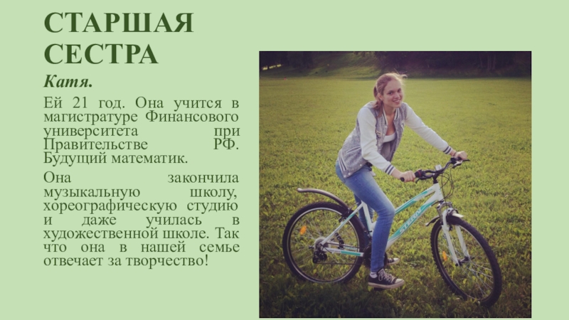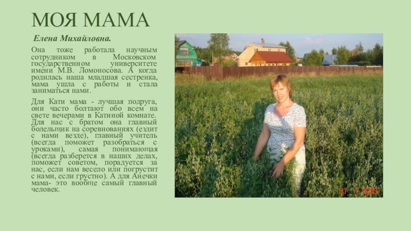 государственном университете имени М.В. Ломоносова. А когда родилась наша младшая сестренка, мама ушла с работы и стала заниматься нами.