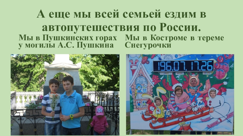 Слайд 10А еще мы всей семьей ездим в автопутешествия по России.