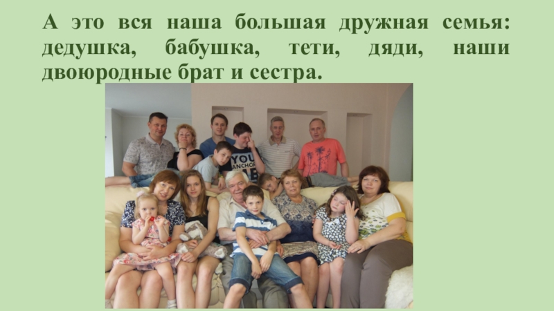 Слайд 12А это вся наша большая дружная семья: дедушка, бабушка, тети, дяди,