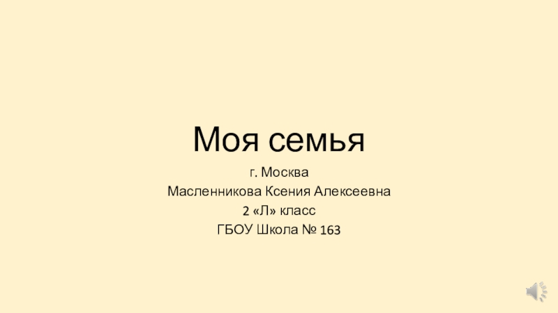 Моя семьяг. Москва Масленникова Ксения Алексеевна2 «Л» классГБОУ Школа № 163