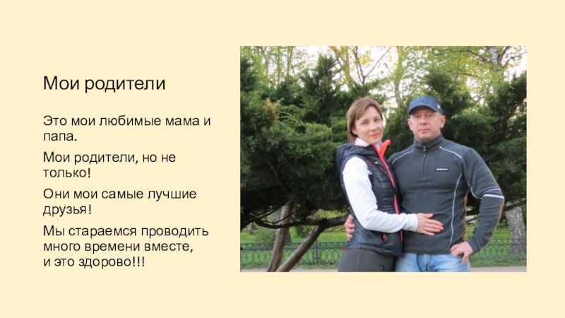 Мои родителиЭто мои любимые мама и папа. Мои родители, но не только!Они мои самые лучшие друзья!Мы стараемся