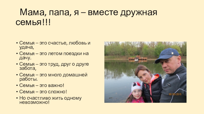 Мама, папа, я – вместе дружная семья!!!Семья – это счастье, любовь и удача, Семья – это