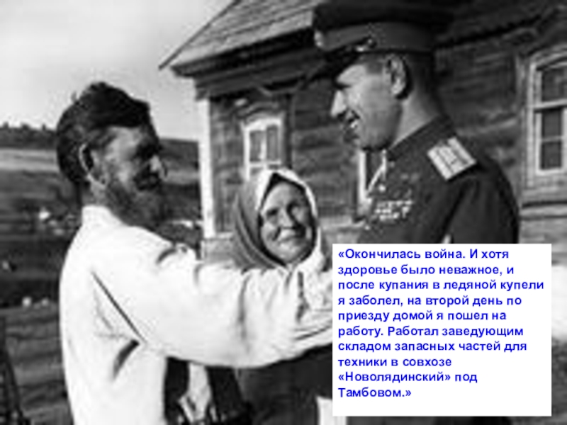Слайд 21«Окончилась война. И хотя здоровье было неважное, и после купания в